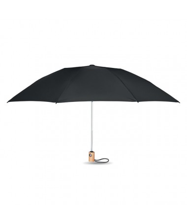 Ombrello reversibile da 23' a 3 segmenti, apertura/chiusura automatica. In tessuto di spugna 190T RPET. Struttura in fibra di vetro. Manico in bamboo con cinturino in cotone. Include custodia RPET abbinata.