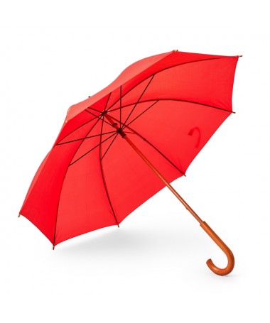 Ombrello automatico TANGO in legno: raggi in metallo, punte e manico curvo in legno, rivestimento in poliestere