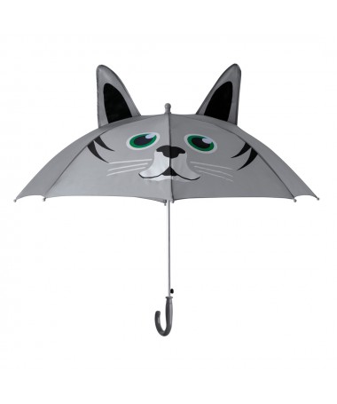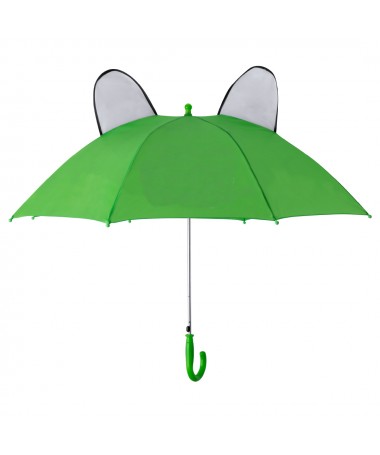 OMBRELLO PER BAMBINI CON DISEGNI DI RANE E GATTI Con un diametro di 78 cm e realizzato in resistente materiale poliestere 180T Apertura automatica, con bastone e stecche in metallo, manico curvo e fodera in poliestere coordinata.