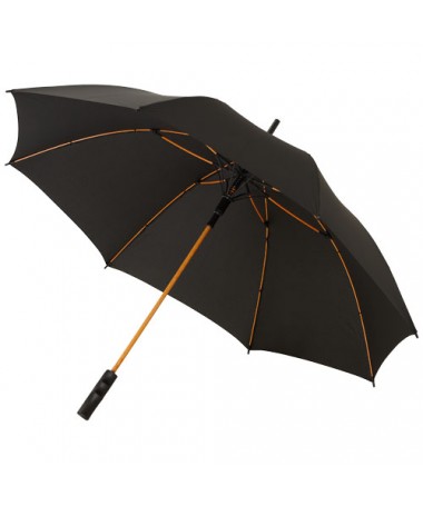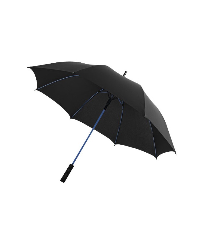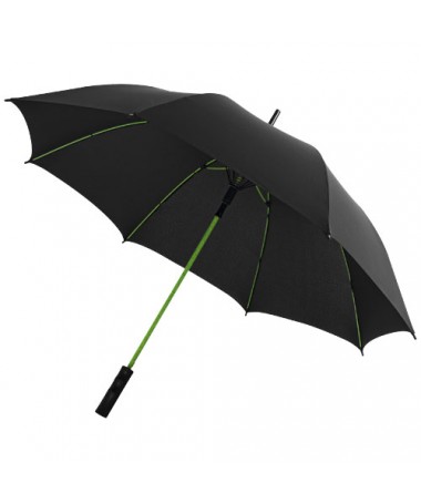 Ombrello apertura automatica 23". Tessuto pongee e custodia in dotazione, asta colorata in fibra di vetro e stecche in fibra di vetro. Cuciture dello stesso colore sul cinturino di chiusura. Sistema antivento. design esclusivo.