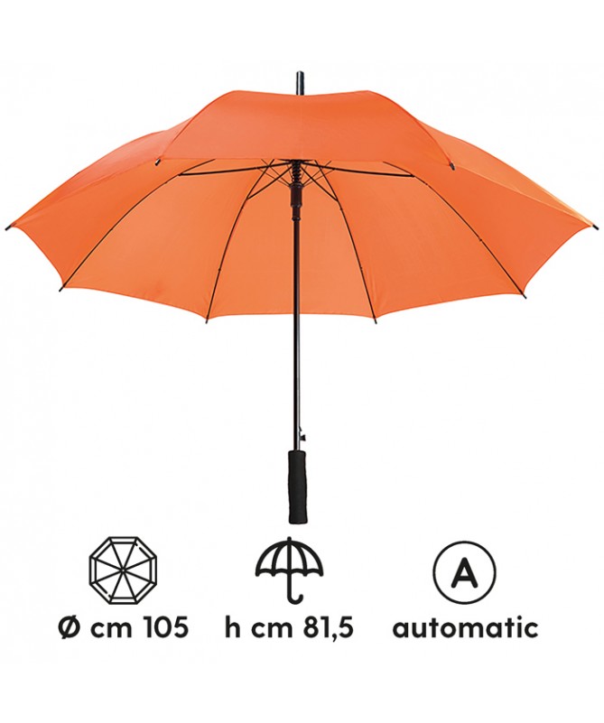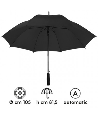 ombrello automatico sistema di apertura con meccanica di alta qualità struttura in fibra di vetro alta resistenza fusto in metallo puntale in plastica nera manico in eva chiusura con velcro