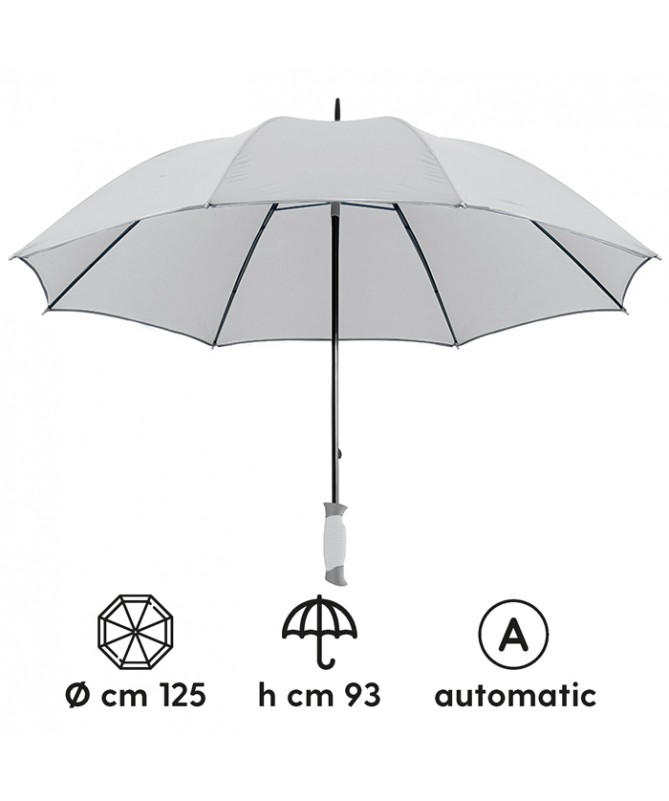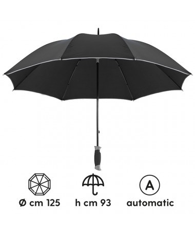 maxi ombrello automatico con profilo a contrasto sistema di apertura con meccanica di alta qualità struttura in fibra di vetro fusto e puntale in metallo manico traforato chiusura con velcro
