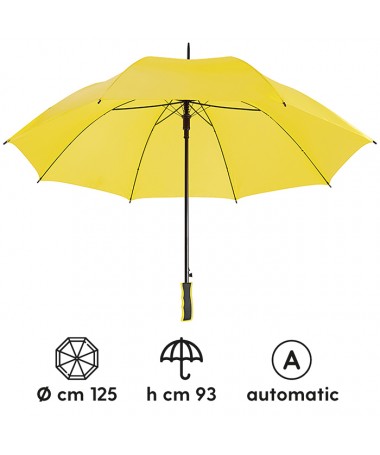 maxi ombrello automatico sistema di apertura con meccanica di alta qualità struttura in fibra di vetro alta resistenza fusto e puntale in metallo nero manico bicolore ergonomico in eva chiusura