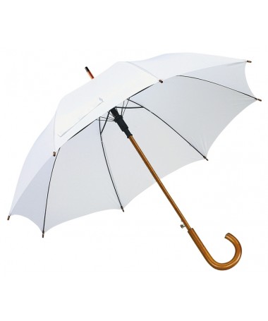 Ombrello classico automatico BOOGIE in legno: raggi in metallo, punte e manico curvo in legno, rivestimento in nylon