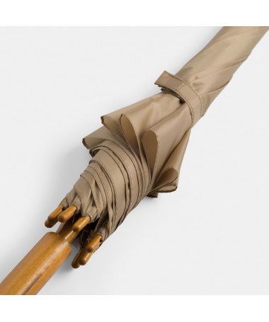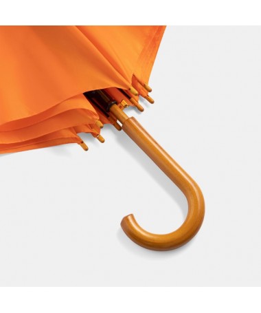 Ombrello automatico TANGO in legno: raggi in metallo, punte e manico curvo in legno, rivestimento in poliestere