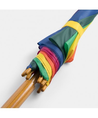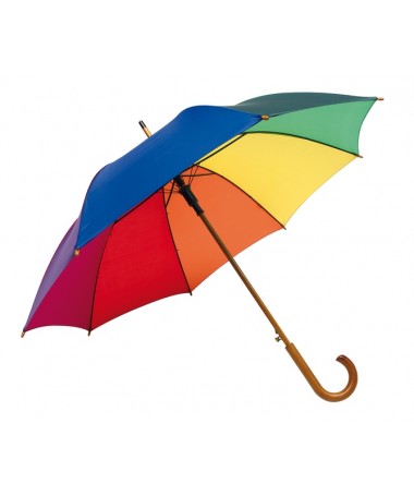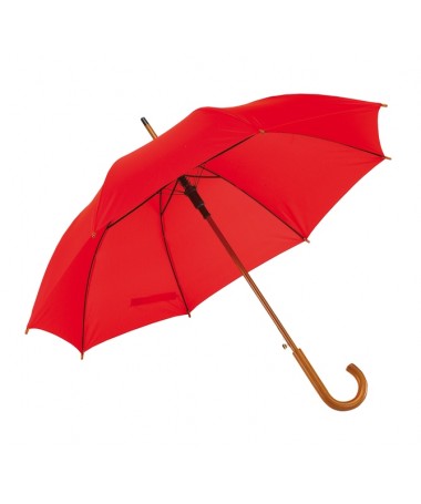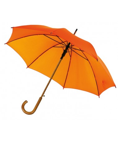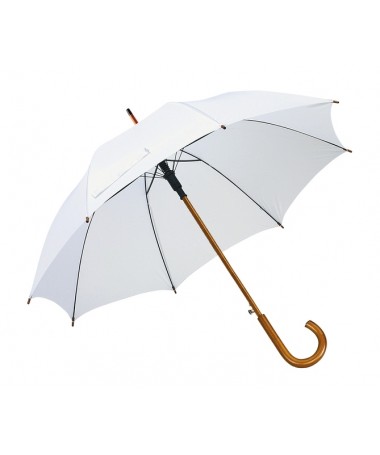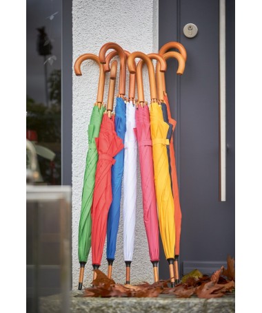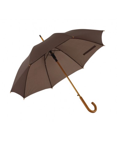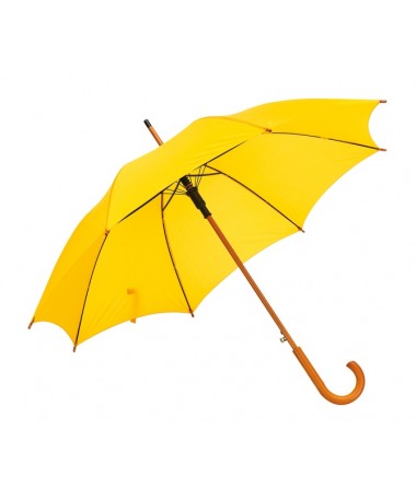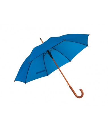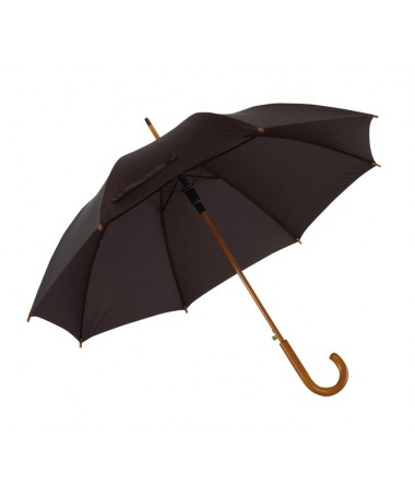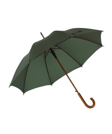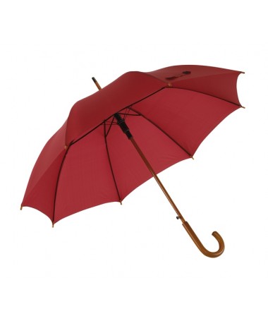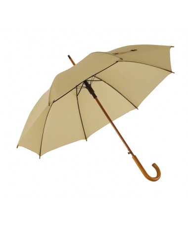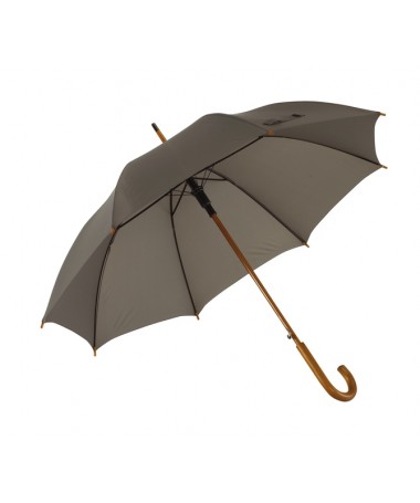 Ombrello automatico TANGO in legno: raggi in metallo, punte e manico curvo in legno, rivestimento in poliestere