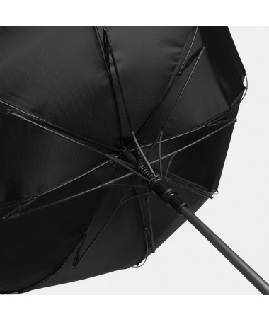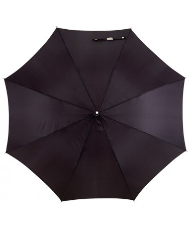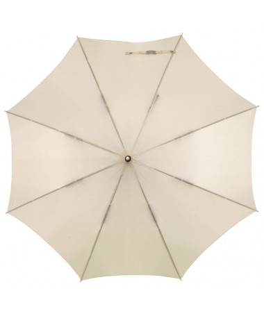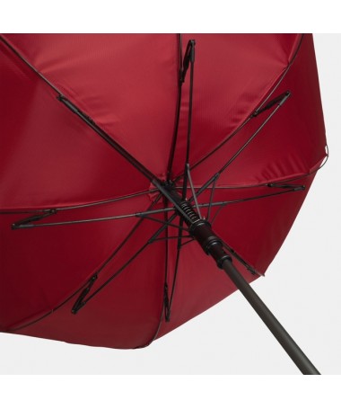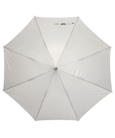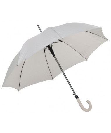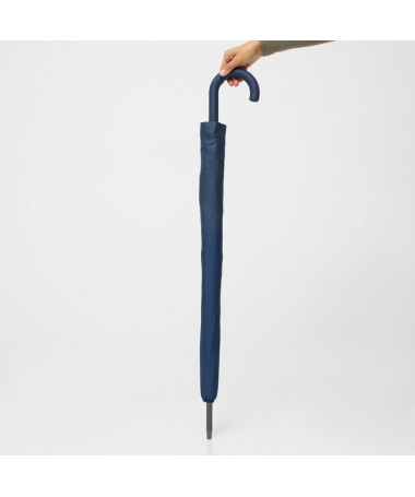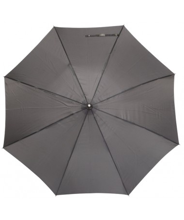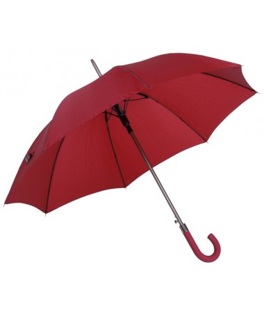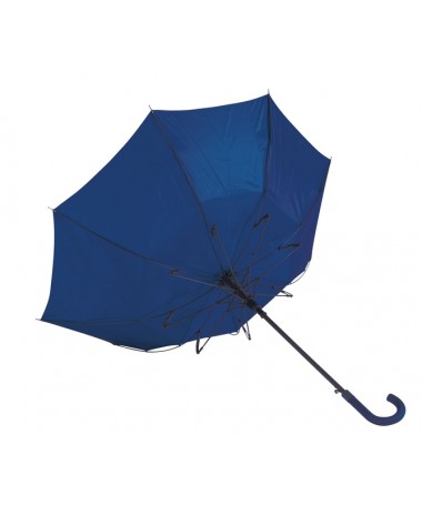 Ombrello classico automatico JUBILEE: stecca in alluminio, raggi in fibra di vetro, punte in metallo, manico curvo gommato dal colore abbinato, rivestimento e custodia in poliestere dalla struttura a nido d`ape, laccetto a chiusura e placchetta in metallo per la stampa