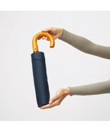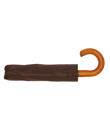 Ombrello tascabile da uomo automatico LORD: stecca in metallo 3-parti, raggi in fibra di vetro e metallo, impugnatura classica in legno, copertura e custodia in poliestere-pongee, con rivestimento particolarmente repellente all`acqua, laccetto di chiusura a strappo