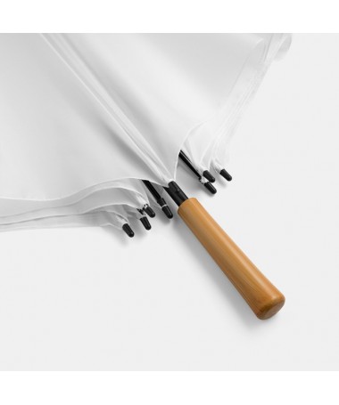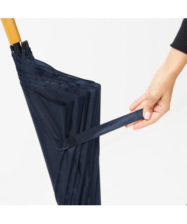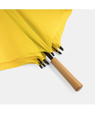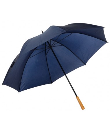 Ombrello da golf RAINDROPS: Bastone metallico e doppi raggi in metallo, punte in plastica, manico effetto legno, tessuto in poliestere, chiusura in velcro