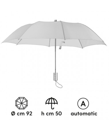 mini ombrello automatico con fodero fusto in metallo manico in plastica silver antigraffio rib in metallo temperato e rinforzato laccio da polso chiusura con velcro
