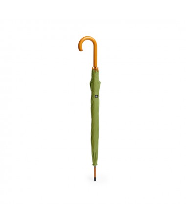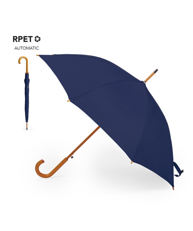 Ombrello Linea Nature da 105 cm di diametro. Realizzato in materiale pongee 190T RPET, realizzato in plastica riciclata, per favorire il riutilizzo dei rifiuti plastici e aiutare la sostenibilità del pianeta. Con apertura automatica e aste metalliche. Manico e bastone in legno, con etichetta distintiva RPET.<br />Confezionato singolarmente in polybag Taglie : S/T