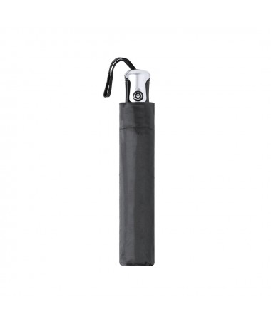 Ombrello pieghevole a 8 pannelli con diametro 98cm. Tessuto in resistente poliestere 190T, con meccanismo automatico di apertura/chiusura e sistema antivento. Barre metalliche in color argento e fibra di vetro. Chiusura in velcro e manico ergonomic e dotato di tracolla. Include fodera abbinata. Taglie : S/T