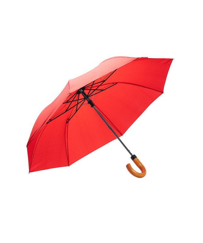 L'ombrello in RPET (poliestere riciclato) con tessuto pongee 190T e manico in legno naturale è un'opzione elegante e sostenibile per proteggersi dalla pioggia. Il tessuto in pongee 190T è resistente e idrorepellente e offre una buona protezione contro la pioggia. Il manico in legno naturale dà un tocco di stile e calore all'ombrello, offrendo una sensazione naturale e confortevole quando lo si tiene in mano. Inoltre, l'ombrello è dotato di un pulsante di apertura automatica per un facile utilizzo e di una chiusura in velcro per una conservazione sicura. Include una fodera coordinata per riporre l'ombrello quando non viene utilizzato, mantenendolo protetto e in ordine. Realizzato in RPET, questo ombrello contribuisce alla riduzione dei rifiuti grazie all'utilizzo di materiali riciclati nella sua produzione.