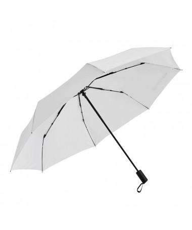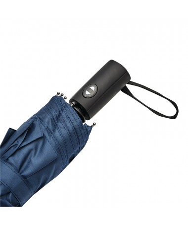 Ombrello pieghevole antivento completamente automatico con copertura in colore coordinato: asta in metallo 3 pezzi con raggi in metallo/fibra di vetro, punte in metallo, manico gommato con cinturino, rivestimento in poliestere pongee, chiusura a velcro