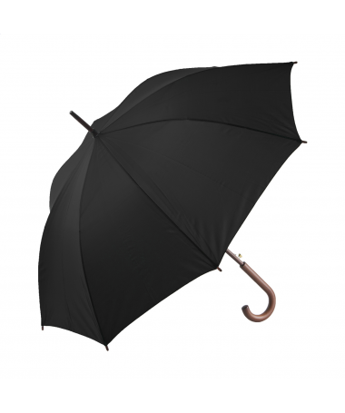 Ombrello automatico antivento con 8 pannelli in Pongee 190T, impugnatura in legno, struttura in metallo e fibra di vetro.