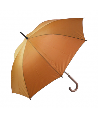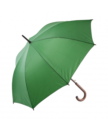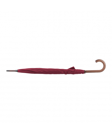 Ombrello automatico antivento con 8 pannelli in Pongee 190T, impugnatura in legno, struttura in metallo e fibra di vetro.