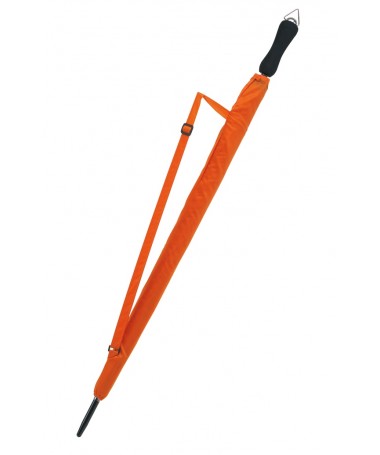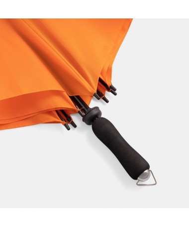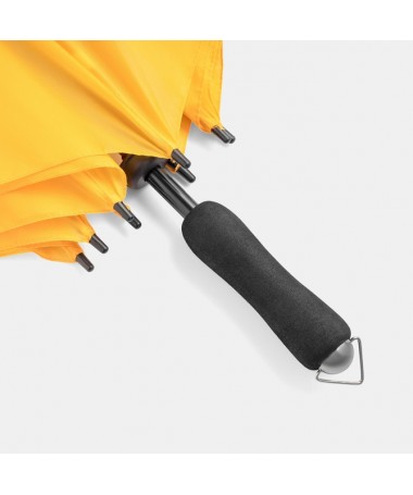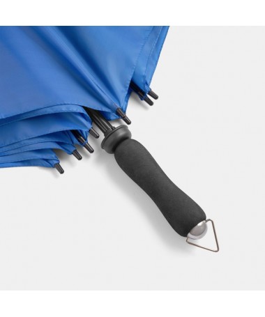 Ombrello Golf MOBILE con custodia a tracolla: stecca in metallo, raggi in metallo a doppio spessore e punte in plastica, manico in gomma morbida, rivestimento in poliestere