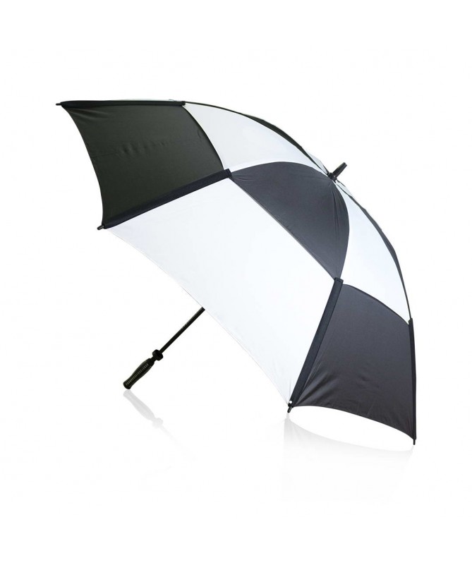 Ombrello da golf ad 8 pannelli di design bicolore sobrio e 135 cm di diametro, con apertura manuale. In resistente pongee con sistema di sicurezza antivento. Con aste in fibra di colore nero, doppia chiusura in velcro e morbida impugnatura in schiuma imbottita completo di fodera dello stesso tessuto in colore nero e confezionato singolarmente in polybag. Taglie : S/T