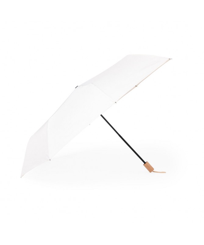 Ombrello pieghevole a 8 pannelli con diametro di 106 cm, realizzato in resistente pongee 190T con finitura naturale. Apertura manuale, con aste metalliche nere e striscia con chiusura a velcro. Manico in legno con cordoncino coordinato e coperchio dello stesso materiale. 23". Manico in Legno. Custodia Pongee Taglie : S/T
