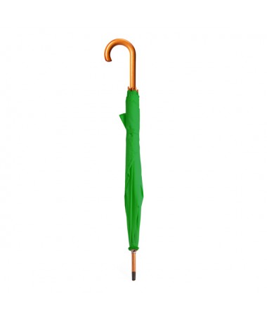Ombrello con manico, asta e punte in legno. Sezioni in nero. Chiusura a velcro abbinata. Apertura manuale. Diametro 105 cm.