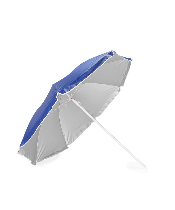 Ombrellone 8 pannelli realizzato in nylon resistente con protezione UV. Disponibile in un ampio assortimento di colori. Tubo e aste in bianco regolabili in altezza. Minigonne con orlo a doppia cucitura. Include custodia con tracolla.