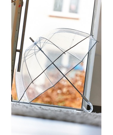 OMBRELLO CLASSICO CON APERTURA MANUALE MANICO RICURVO IN PLASTICA E CUPOLA TRASPARENTE