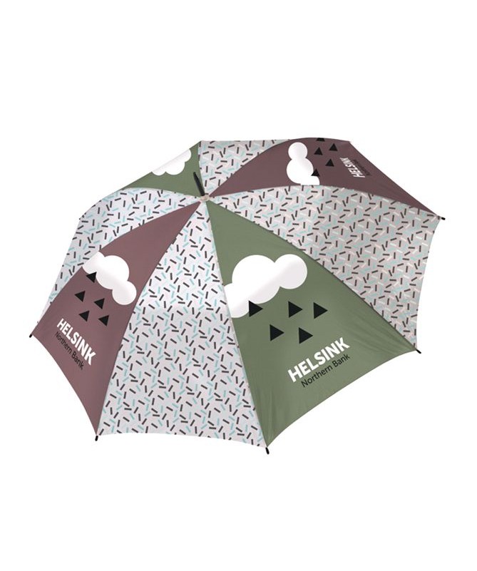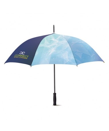 Il modello di ombrello personalizzato più diffuso. 23 pollici (diametro 102 cm), asta e struttura in metallo placcato nero. 8 pannelli - Punte in metallo, apertura automatica, cupola in poliestere 190T e manico in EVA. Questo ombrello può essere personalizzato su ciascun pannello con una grafica in quadricromia differente. E' inoltre, possibile avere il manico in EVA o plastica e avere il puntale e le estremità dei raggi con colore richiesto. Opzioni disponibili con costi aggiuntivi da preventivare: 1) Possibilità di cupola in pongee 190T anzichè poliestere; 2) Cupola nel colore pantone; 3) Cupola con doppio strato rinforzato (in poliestere o pongee).