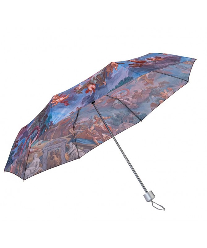 Ombrello personalizzato 3 segmenti da 21 pollici (dia. 93cm) asta e struttura in metallo placcato in zinco. Manico in plastica con cordino da polso. Chiusura manuale. Pouch coordinato incluso. Cupola in poliestere 190T. Questo ombrello può essere personalizzato su ciascun pannello con una grafica in quadricromia differente. Opzioni disponibili con costi aggiuntivi da preventivare: 1) Possibilità di cupola in pongee 190T anzichè poliestere; 2) Cupola nel colore pantone; 3) Cupola con doppio strato rinforzato (in poliestere o pongee); 4) Stampa full colour sulla custodia.