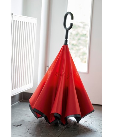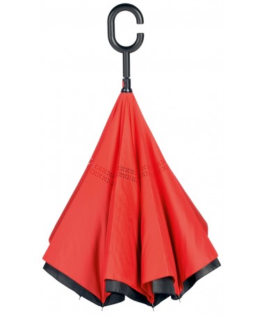 OMBRELLO REVERSIBILE CON APERTURA MANUALE MANICO A GONDOLA APERTA IN PLASTICA